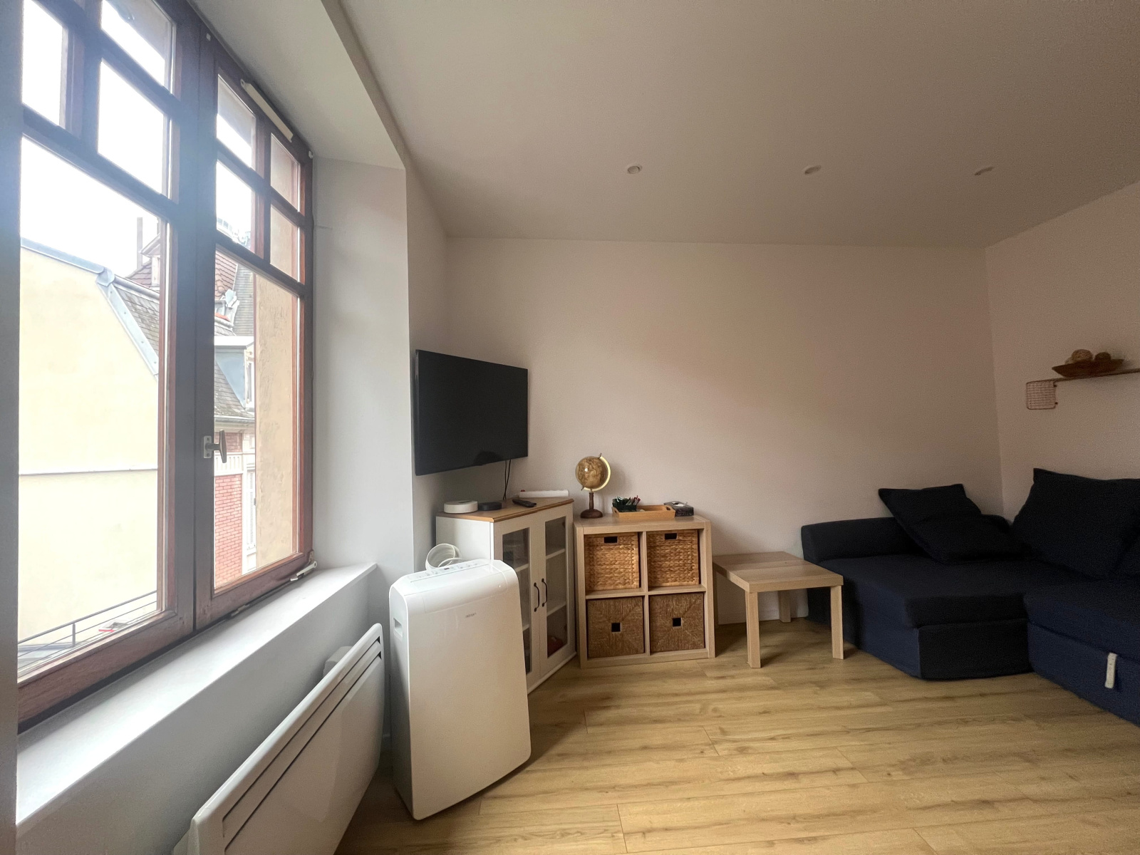 Dégagement entrée, séjour, une belle chambre, une cuisine équipée, une salle d’eau avec douche à l’italienne, un WC.