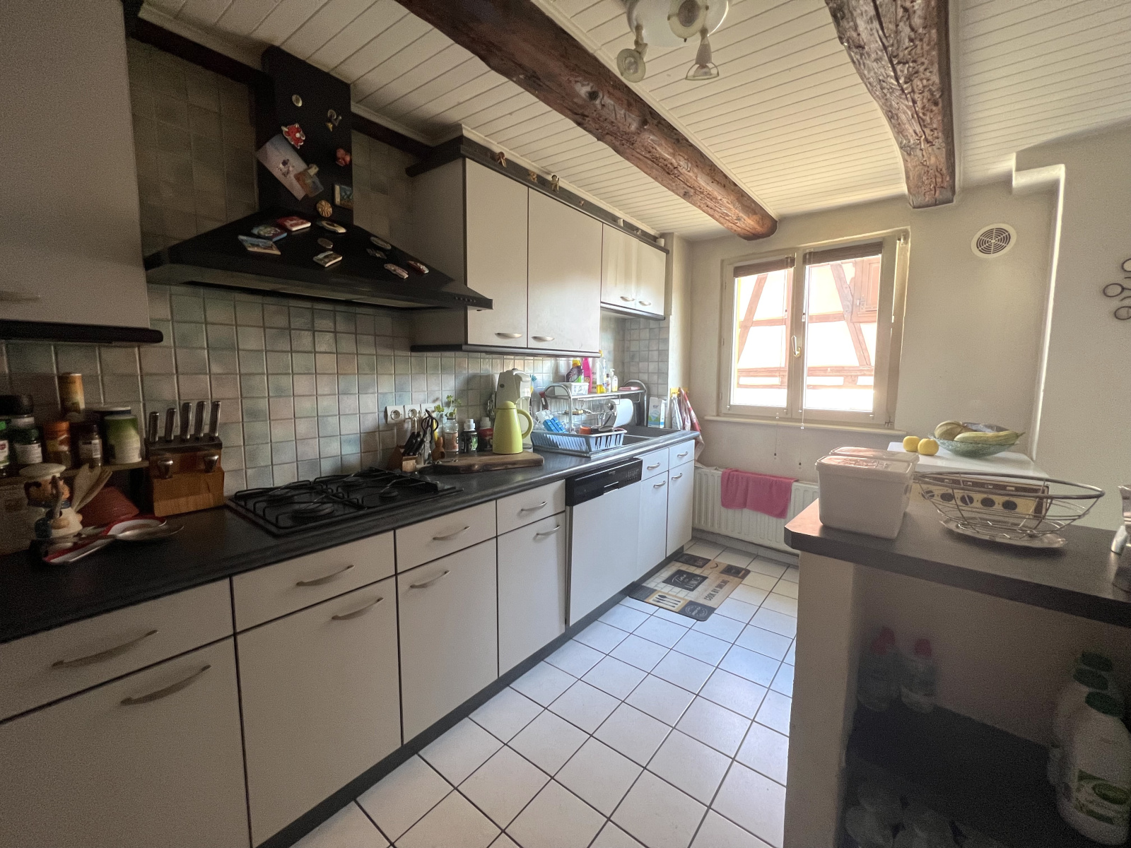 Située au centre du village de WINTZENHEIM, dans une perpendiculaire à la rue principale, proche de toutes les commodités, charmante maison de village de 120m2 composée comme suit :